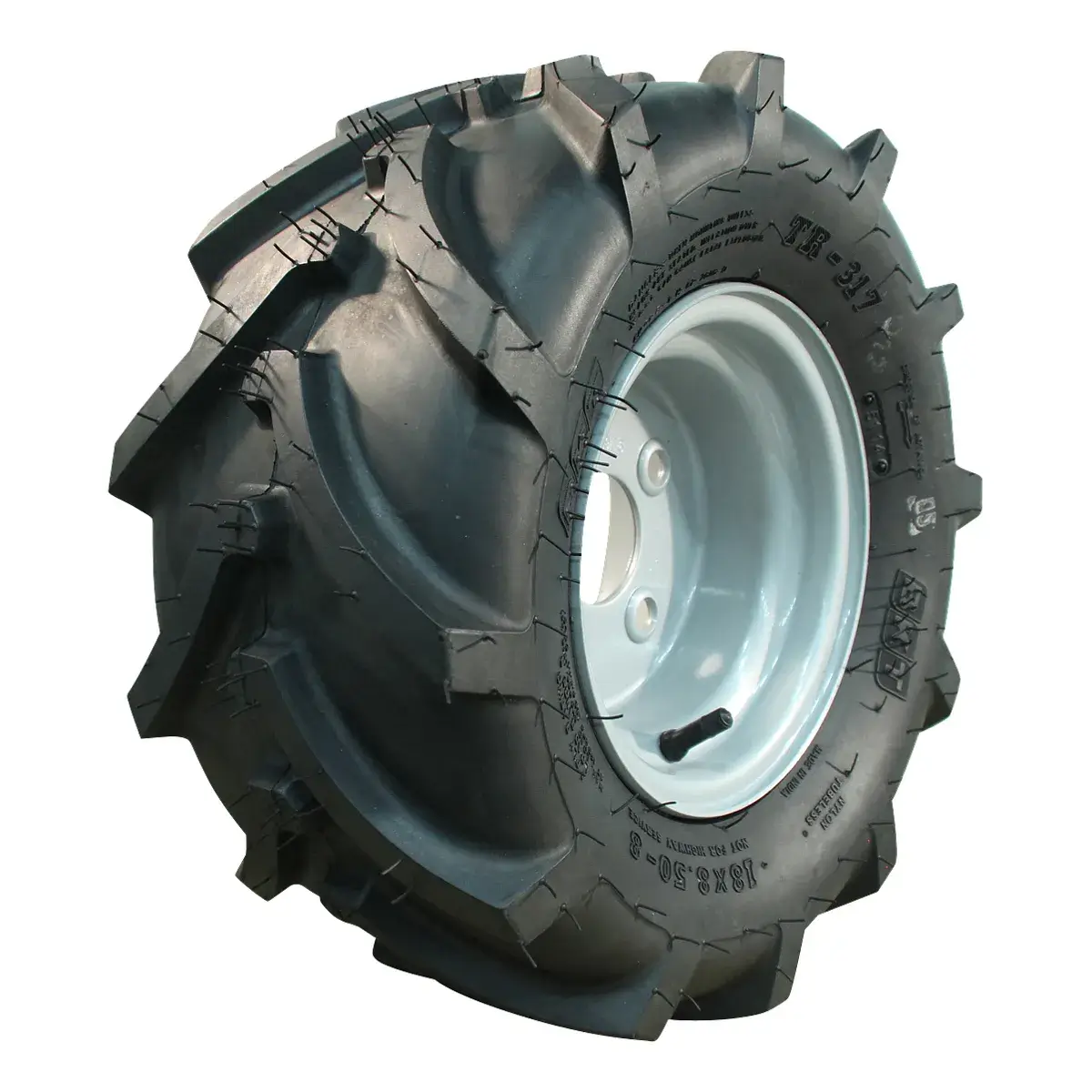 Home » Geen categorie » luchtband + wiel 18×8.5-8 TR-317 4PR + 5.50x8H2 ET-2 60/100/4 staal grijs links